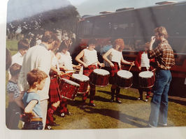 In 1973, as I was getting close to aging out of the White Spot Junior Pipe Band, Jack Gallaher guided me into the Triumph Street Pipe Band. That was a life defining move for me. The band became international award winners in the pipe band community and the world champion drum corps in 1979. The impact of those times on my younger self ran deep. I had some outstanding mentorship from Jack, as well as lead drummer Willie McErlean, bandmate Jon Moore, and even the Pipe Major Hal Senyk. I consider Jack Gallaher to be my second teacher. Jack was the one that I went to for lessons before joining the band. He taught me the importance of controlling stick height and being meticulous in in producing sound. I still teach those basic principles to my students today. Aside from the lessons, Jack gave me a lot of his personal time helping me make the cut in the TSPB drum corps. Jon Moore exposed me to many other styles of drumming and great drummers. He told me that “Pipe band drummers have no monopoly on rudiments”. (Yes, that was news to me at the time.) We had many “serious drum corps practices” (AKA: drink beer and play records) after actual drum corps practices). He got me listening to drummers that I would not have heard of otherwise. Willie was a student of jazz great, Joe Morello. He brought a high standard of technique to us in the corps. Of all pipe band drummers that I have known, Willie had the most unique touch to the drum. Blindfolded, you could pick his sound out from the crowd. I spent the better part of two decades in the Triumph St. band, with some time off for good behavior. We had many generations and iterations of the drum corps. I was influenced by literally everyone I played with, to one degree or another. The original group I played with was the most impactful. Thank you, Jack for guiding me into the band. Thank you, John, and Willie for opening my ears.
